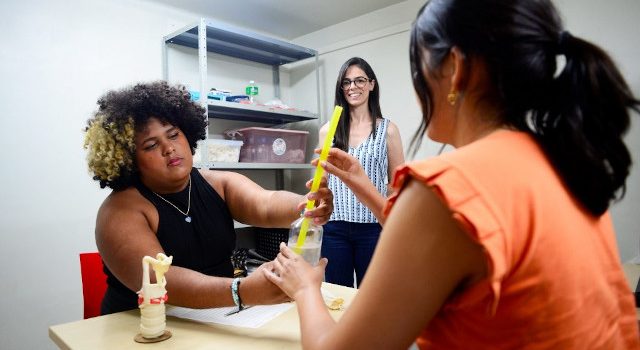 Imagem em destaque: a universitária Akira conduz os exercícios, enquanto a coordenadora Juliana Godoy supervisiona os atendimentos. Foto: Cícero Oliveira/ Agecom/UFRN