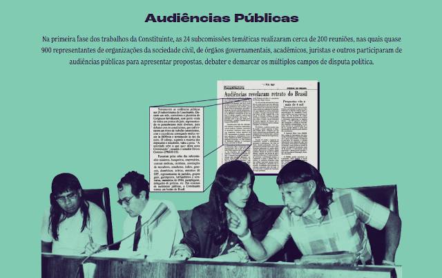 Na primeira fase dos trabalhos da Constituinte, as 24 subcomissões temáticas realizaram cerca de 200 reuniões, nas quais quase 900 representantes de organizações da sociedade civil, de órgãos governamentais, acadêmicos, juristas e outros participaram de audiências públicas para apresentar propostas, debater e demarcar os múltiplos campos de disputa política.