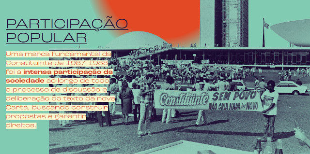 Uma marca fundamental da Constituinte de 1987-1988 foi a intensa participação da sociedade ao longo de todo o processo de discussão e deliberação do texto da nova Carta, buscando construir propostas e garantir direitos.