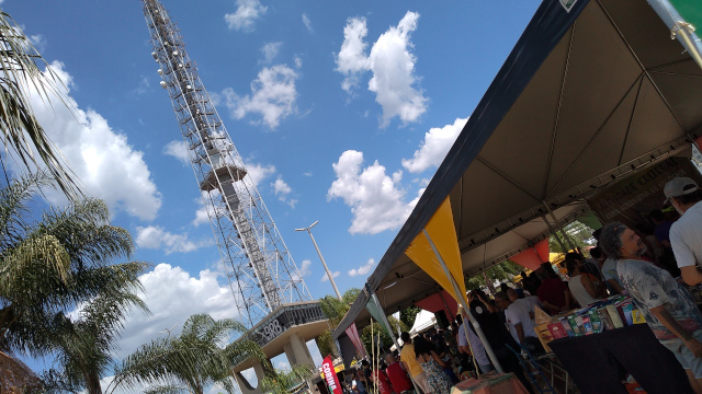 Aos domingos, a mega feira sob a Torre de TV ferve – de arte e cultura do Brasil Central, incluindo apresentações musicais.