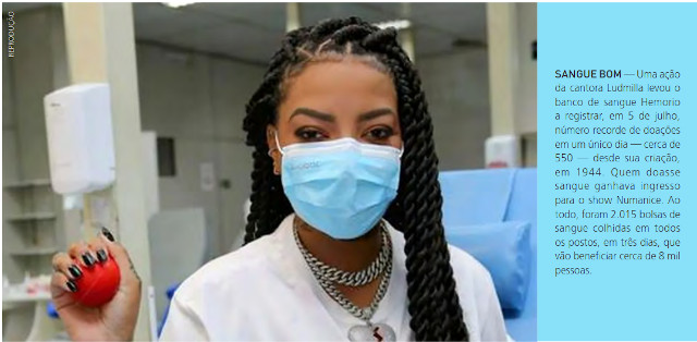 Imagem em destaque: Ludmilla doando sangue no Hemorio. Reprodução Revista Radis/ Fiocruz