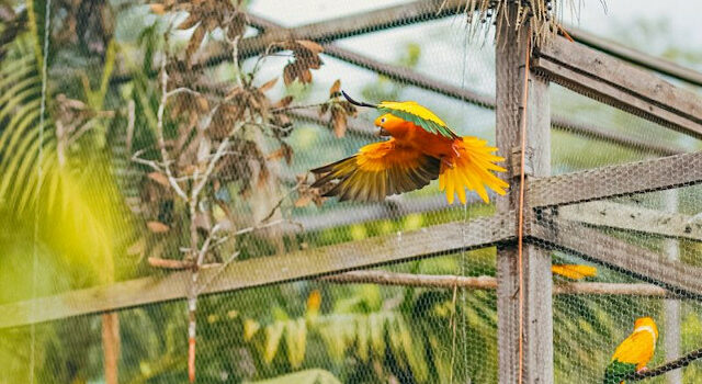 Imagem em destaque | Aves do Projeto de Reintrodução e Monitoramento de Ararajubas na Região Metropolitana de Belém. Foto: Ideflor-Bio