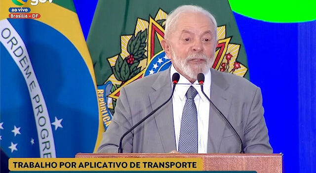 Imagem em destaque: presidente Lula na solenidade de lançamento do projeto de lei complementar que dá direitos aos trabalhadores de aplicativos de transportes de passageiros. Fonte: reprodução TV Gov Br