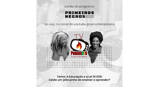 Em parceira com o Penumbrabaiano, iniciativa do arte-educador Gustavo Duarte, o Primeiros Negros terá um programa semanal na TV Penumbra, pelo youtube.