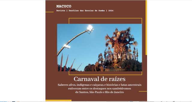 “Saberes afros, indígenas e caiçaras; e histórias e lutas ancestrais estiveram entre os destaques nos sambódromos de Santos, São Paulo e Rio de Janeiro”, sublinha a publicação.