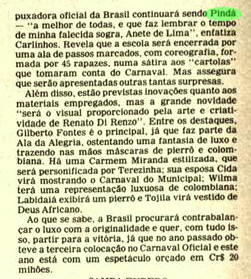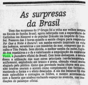 Pindá em 1981, em concurso de samba exaltação para a cidade de Santos. Reprodução jornal Cidade de Santos