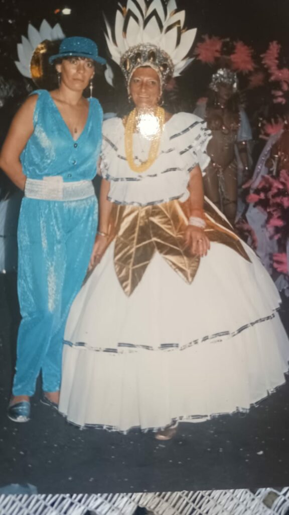 PINDÁ | A Brasil… são 48 anos de amor, de paixão por esse pavilhão que eu tanto amo. Mas eu tive a honra, o prazer de cantar em outras agremiações: Mocidade de São Vicente, Águia Vicentina, Camisa Alvinegra… Fiquei 31 anos como intérprete oficial da Brasil. Trinta e um anos! Foram depois sete anos de Independência do Casqueiro, cantei na Padre Paulo em 1990 – também tive o prazer, a honra de ser intérprete oficial da Mocidade Independente de Padre Paulo. Então, é uma trajetória muito, muito gratificante para mim, de ser hoje reconhecida como sou no mundo do samba. E a pessoa a quem eu devo tudo isso é a nossa inesquecível, a nossa saudosa Tia Isaurinha, quem me abriu as portas para que eu me tornasse uma intérprete, e uma intérprete oficial durante 31 anos pela Brasil. Após sete anos que eu fiquei afastada [da escola], eu voltei novamente para Brasil, não mais como intérprete oficial. Eu só faço parte da aula musical, não mais como intérprete oficial.