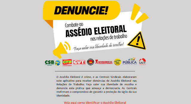Para evitar que um trabalhador ou servidor público sofra a pressão direta ou indireta dos patrões ou dos chefes imediatos para votar em determinado candidato, as centrais sindicais lançaram, nesta terça-feira (3), um aplicativo onde é possível que o trabalhador denuncie essa prática antidemocrática.