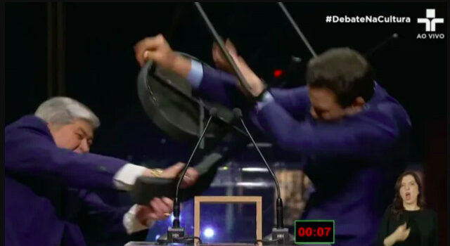 Imagem em destaque: o registro da cadeirada no debate entre candidatos à Prefeitura de São Paulo. Reprodução TV Cultura