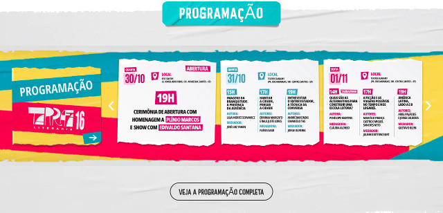 A Tarrafa Literária, festival de literatura que ocorre em Santos desde 2009, chega à 16ª edição se consolidando como um dos maiores eventos do gênero do país.