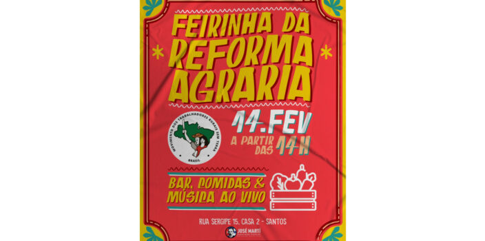 A José Martí Cultural em Santos realiza em sua sede, nesta sexta-feira, dia 14, a Feirinha da Reforma Agrária do MST [Movimento dos Trabalhadores Rurais Sem Terra].