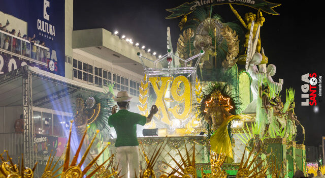 Imagem em destaque: abre alas da X-9. Foto: Fernando Godoy (@godoymultimidia)/ @carnaval.fotos/ divulgação Liga Independente Cultural das Escolas de Samba de Santos (@ligasantoslicess)