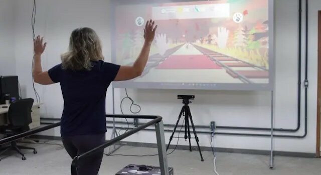 Equipamento desenvolvido pela Ufes combina sensores, e um telão digital leva a pessoa para dentro do ambiente virtual em três dimensões (3D)