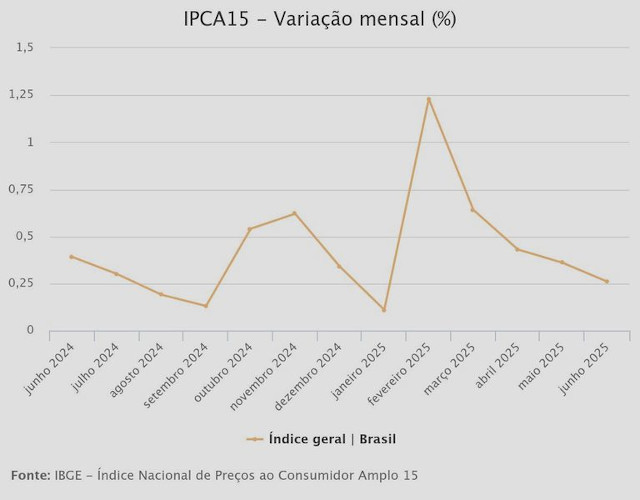 É o que aponta o Índice Nacional de Preços ao Consumidor Amplo 15 (IPCA-15), divulgado nesta quinta, dia 26, pelo Instituto Brasileiro de Geografia e Estatística (IBGE).