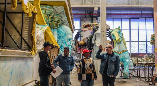 Imagem em destaque: os representantes da Acadêmicos do Tatuapé, Wagner Santos, Edmundo Fontes, Sebastião Aranha e Eduardo Santos, no galpão da escola na Fábrica do Samba em São Paulo. Foto: Priscila Ramos/ divulgação MST