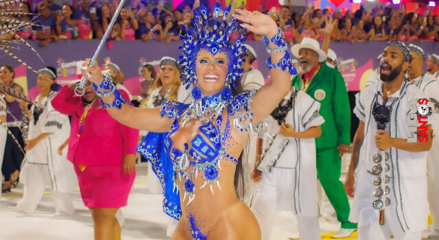Imagem em destaque: Viviane Araújo à frente da bateria da União Imperial. Foto: Fernando Godoy/ Carnaval Fotos/ divulgação Liga Independente das Escolas de Samba de Santos (Licess)