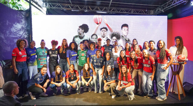 Imagem em destaque: atletas das equipes participantes da LBF 2026, no evento de lançamento desta temporada, em 3 de março. Foto de Guilherme Soeiro/ divulgação