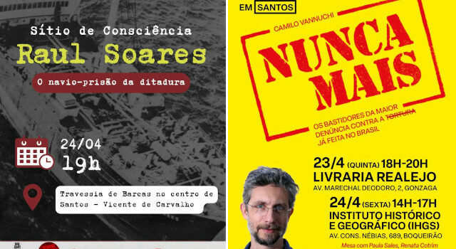 Dois eventos em Santos nesta semana não deixam cair no esquecimento o terror da ditadura e os movimentos de resistência e luta pela democracia.