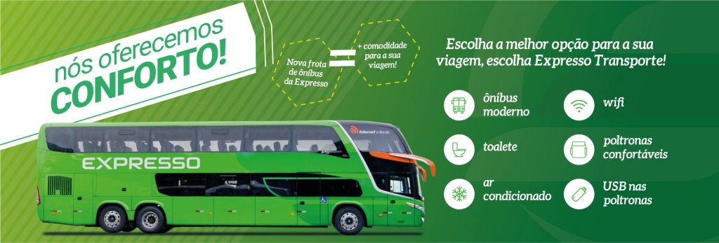 A Expresso Transporte possui uma frota moderna, oferecendo aos passageiros ônibus com ar-condicionado, TV, água, sanitário, Wi-Fi, poltronas reclináveis, entre outros serviços.