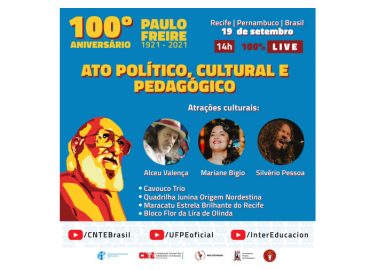 Muita arte no Centenário de Paulo Freire 17 de setembro de 202119 de setembro de 2021 · CULTURA Programação começa no domingo, dia 19, e inclui uma ‘live’ com o cantor Alceu Valença; confira outras atrações, que se […]