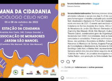 Semana Célio Nori chama a atenção para a cidadania 5 de outubro de 20226 de outubro de 2022 · DIREITOS Atividades culturais, ambientais e estudantis marcam programação que homenageia sociólogo vítima da covid-19; evento ocorre em Santos, de 5 a […]